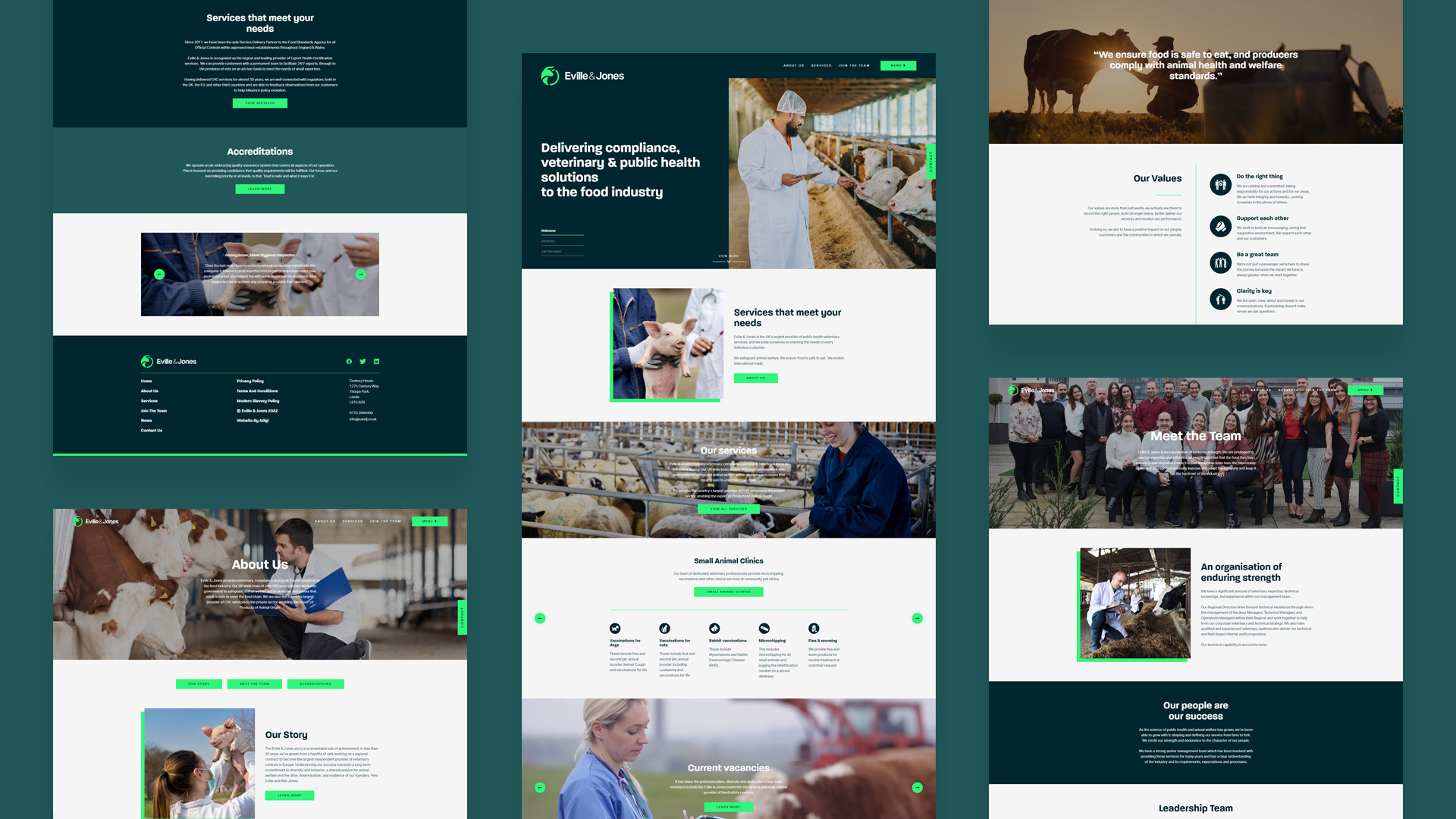 From the new brand identity, including typography and colour palette, we then worked with Eville & Jones to create a new sitemap for the website. Importance needed to be placed on the story and history of the company, the services they provide, and the team culture, training and career opportunities available.